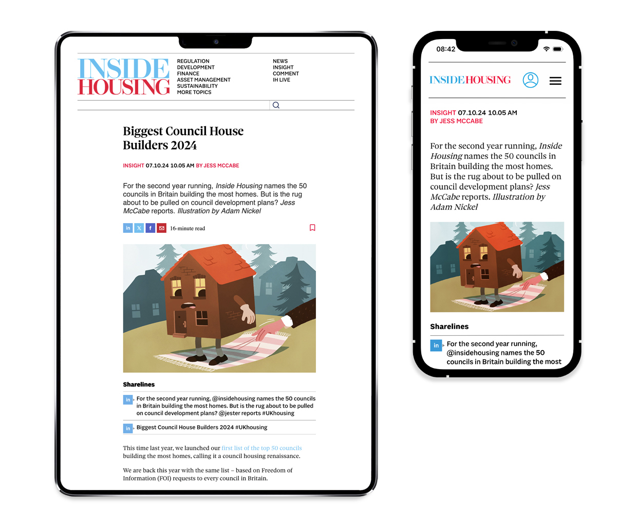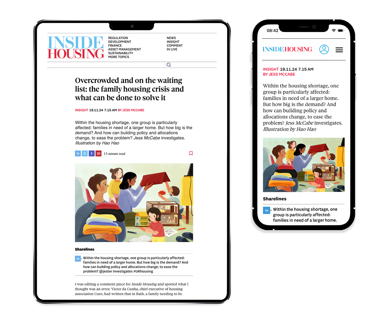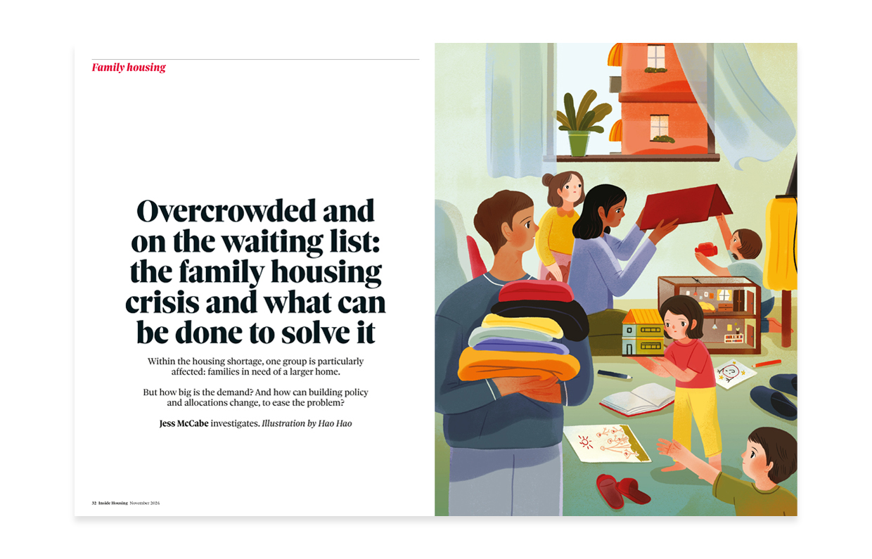 A series of commissioned illustrations for Inside Housing Magazine, a monthly trade publication that covers the United Kingdom’s social housing sector. The illustrations were published in both the print and digital editions of the magazine. Illustrations by Katie Edwards, Adam Nickel, and Hao Hao.